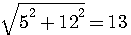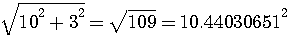Exemple 1: 5²+12²=25 +144 =169 (=13²) : Exemple 2: Dans ces cas le coté du carré Z² est un entier ou une fraction , ce triangle est "dit RECTANGLE" PAR CONTRE:Si je forme un triangle rectangle ayant pour coté 10 et 3 (détaillé au chapitre suivant) alors