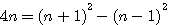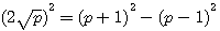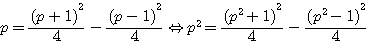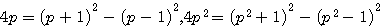 Dans ces deux équations, nous remarquons que le 4 ne change pas , 4p = (p+1)² -... et 4p² = (p²+1)²-... donc dans les deux cas :