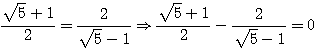 Je trouve remarquable de trouver directement, par "l'axiome de Diophante" une valeur à x sans résolution du second degrés.. Remplaçons x par sa valeur Ces deux nombres sont bien égaux (=1.6180....) Appliquons le produit en croix pour vérifier: