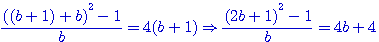 Exemple dans la colonne b=3, a=(3+1)=4 : 7²-1=48 divisé par 3 = 16 bien égal 4*4 ou 12+4 En divisant (a+b)²-(a-b)² par b , ou chaque terme par b , l'on obtient 4a, qui est égal à (a+1)²-(a-1)².