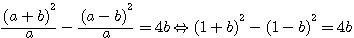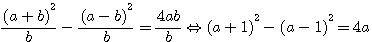 Division de (a+b)²-(a-b)²=4ab par b ou a