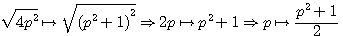 4p² étant un carré de coté 2p . Un des cotés d'un triangle rectangle à pour hypothénuse L'autre coté de ce carré Si nous faisons la racine carré entre 4p² et l'hypothénuse