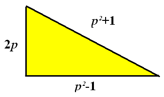 Notez que dans la première expression 4p n'etant pas un carré 4p, p+1,p-1 n'est pas un triangle rectangle entier.