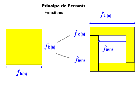 En lisant la phrase de Fermat expliquant que sa marge était trop petite pour donner l'explication de sa conjecture (en lisant ses écrits, l'on s'aperçoit qu'il était coutumier du fait), j'ai fondé l'hypothése que Fermat voulait physiquement augmenter la taille de sa feuille. J'ai donc pris un carré de papier et ai procédé au découpage ci-contre. |